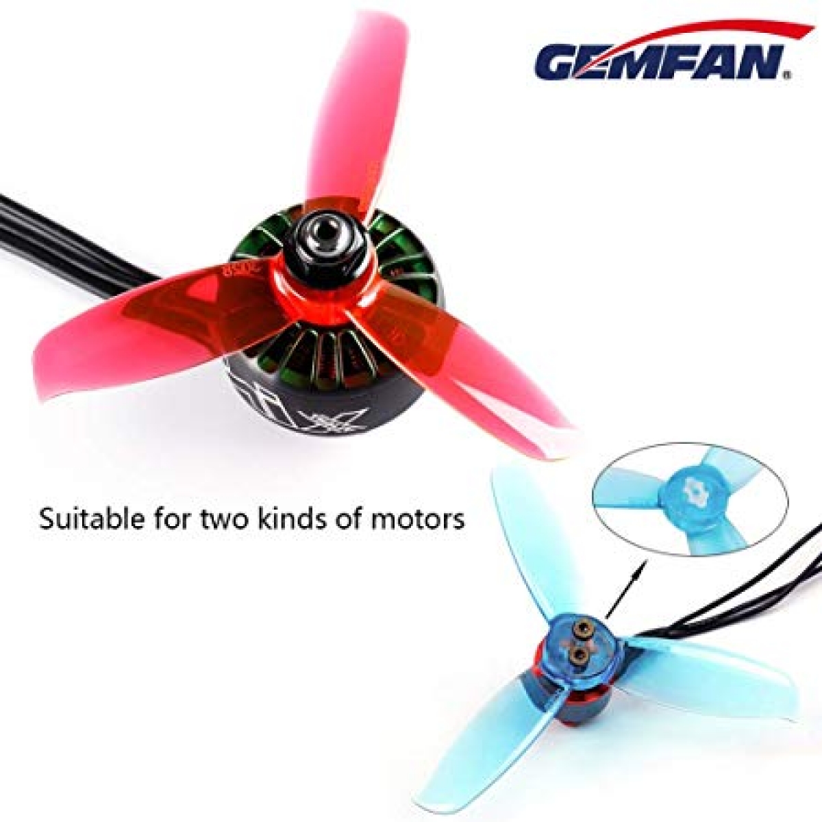 Helices para Microquads de 3 pulgadas compatibles con dos tipos de tornillos.